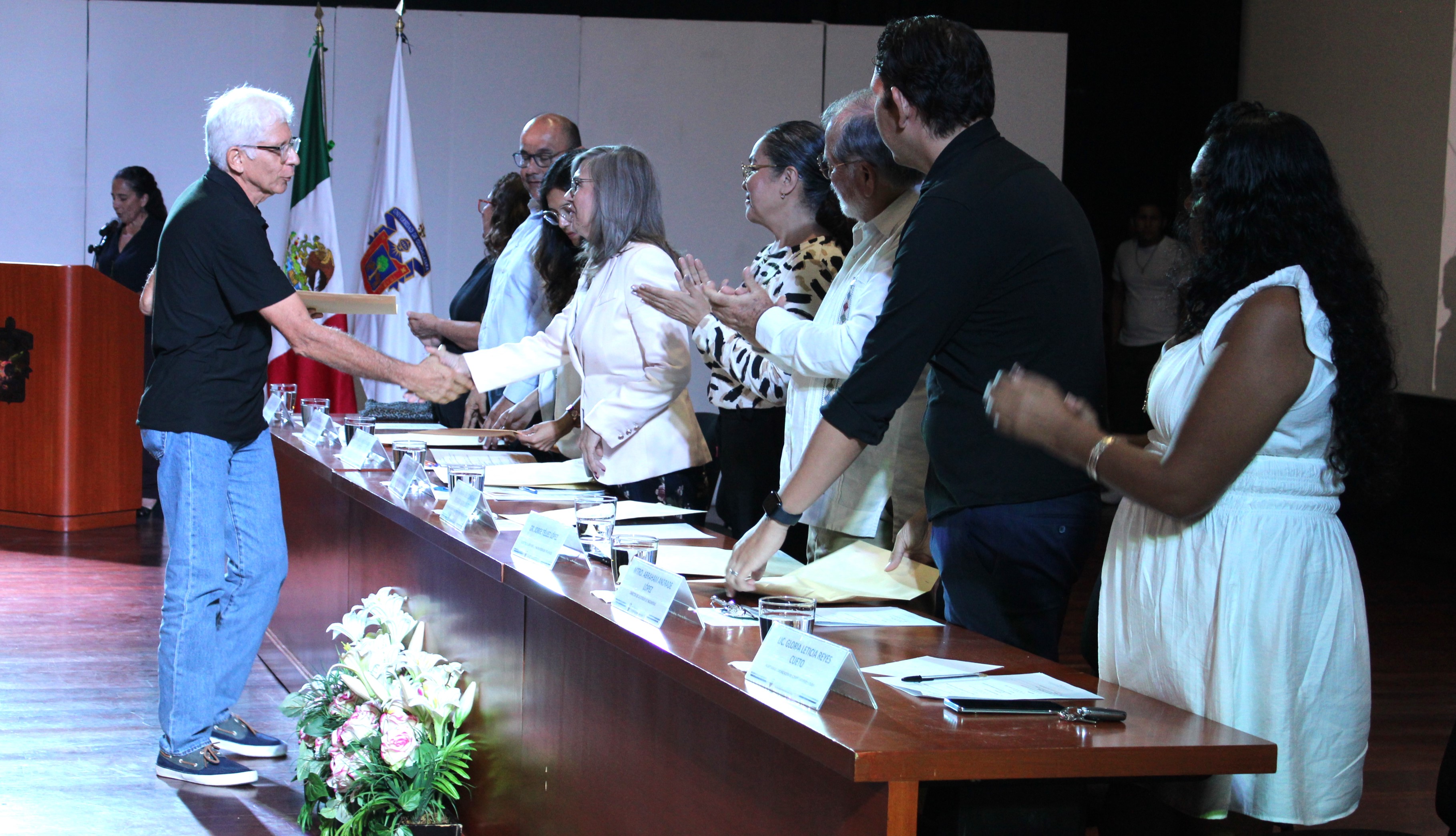 La ceremonia fue presidida por la Dra. María Esther Avelar Álvarez, Rectora del CUCosta, quien expresó que este homenaje representa un agradecimiento institucional a mujeres y hombres que, con su compromiso y vocación, han sido pilares fundamentales en el desarrollo de las funciones sustantivas de la Universidad: docencia, investigación y extensión.
