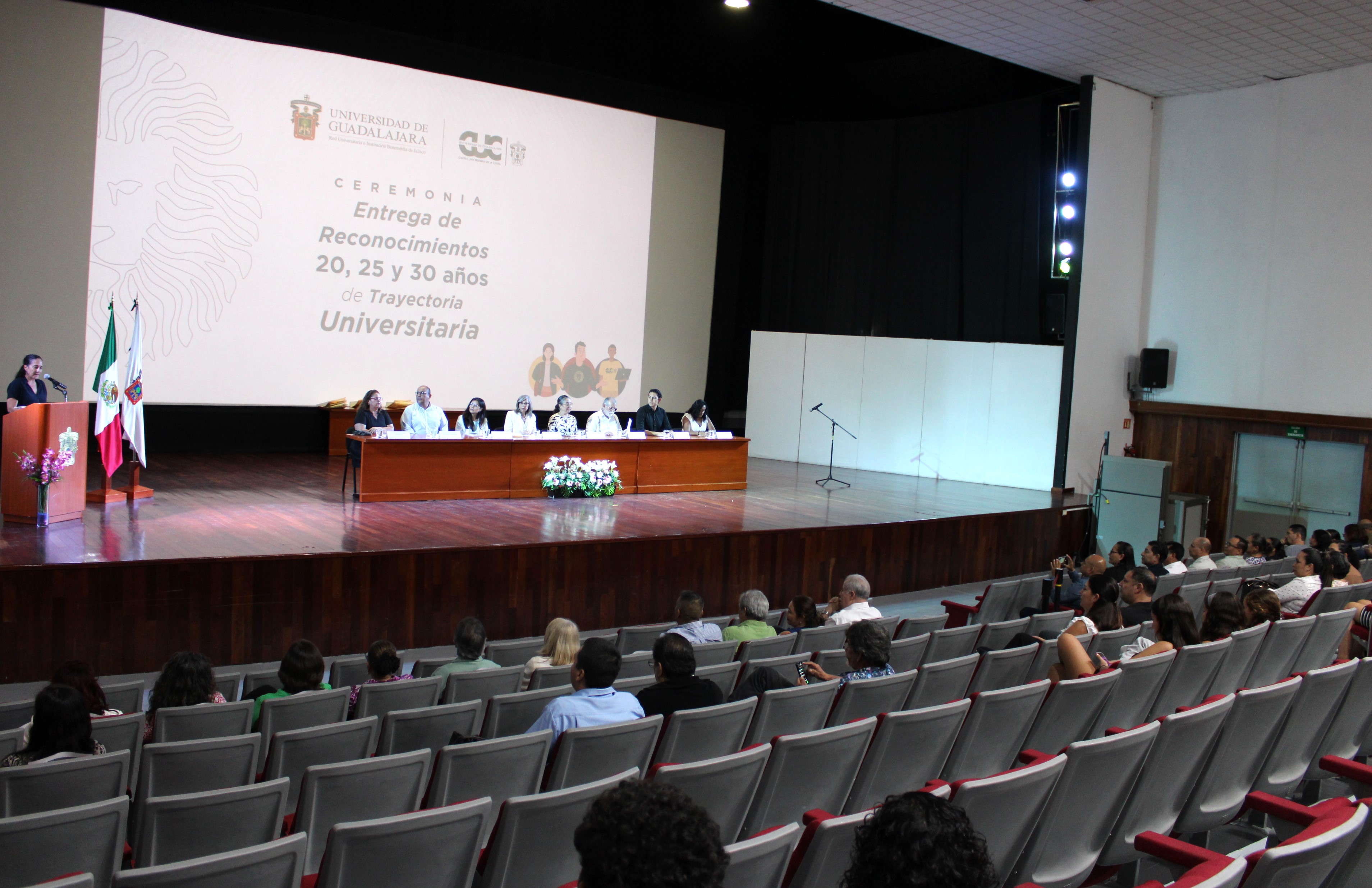 En un emotivo acto celebrado en el auditorio Dr. Juan Luis Cifuentes Lemus, el Centro Universitario de la Costa (CUCosta) de la Universidad de Guadalajara se entregaron reconocimientos a 34 integrantes de su comunidad universitaria por 20, 25 y 30 años de destacada trayectoria académica, administrativa y de servicios.