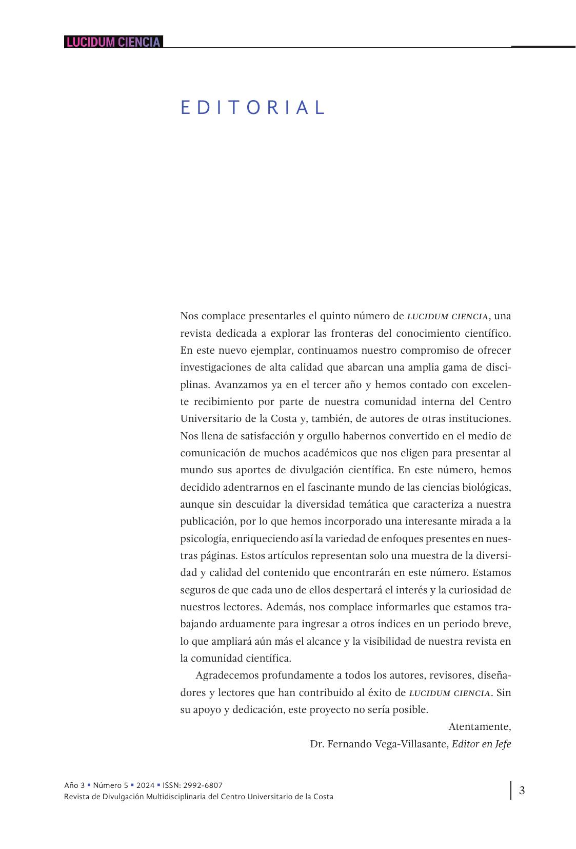 • LUCIDUM CIENCIA, Núm. 5, enero-junio, 2024