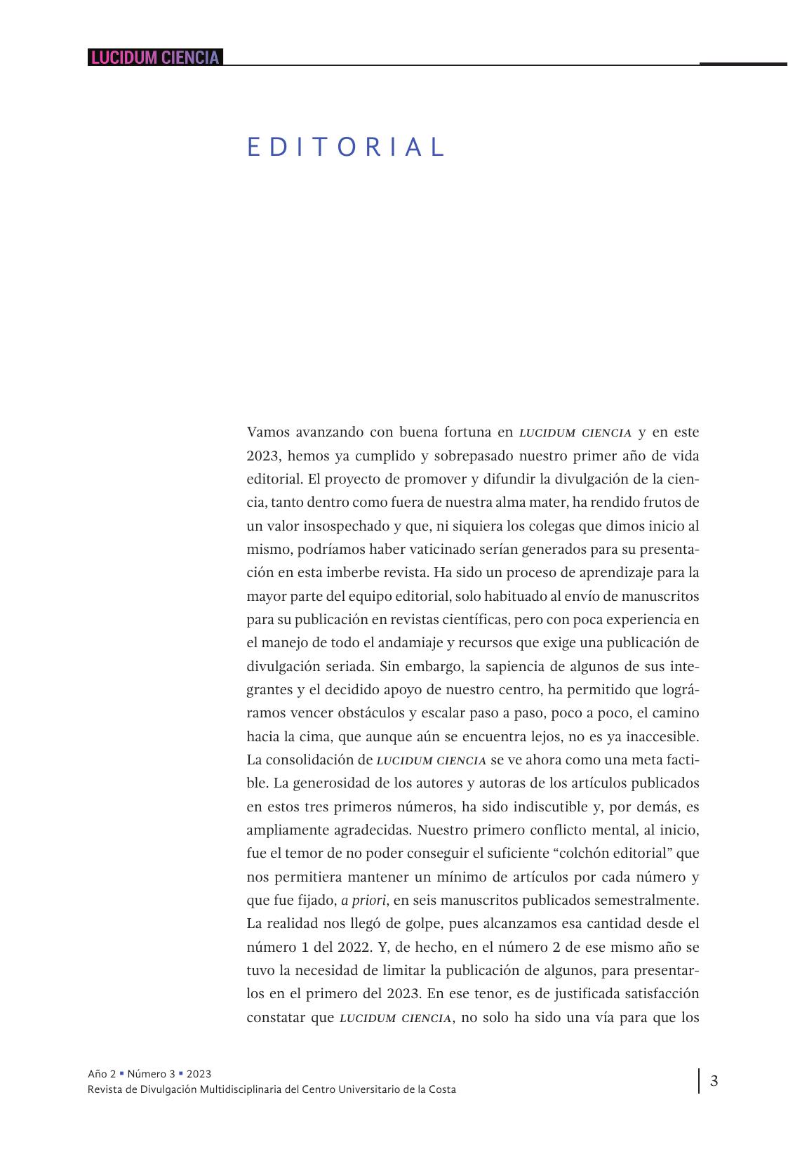 • LUCIDUM CIENCIA, Núm. 3, enero-junio, 2023
