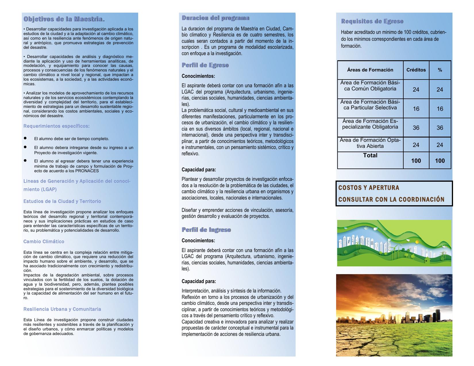 Las áreas de incidencia de la maestría se pueden categorizar en cinco apartados: